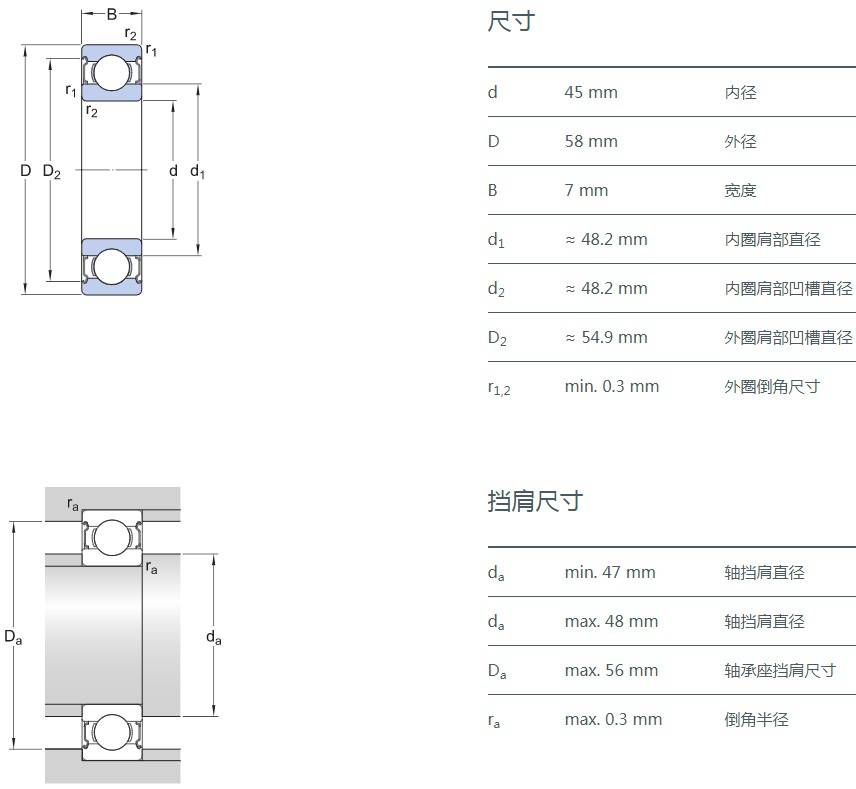 SIAIF不銹鋼深溝球軸承 S61809-2Z 詳細(xì)參數(shù)