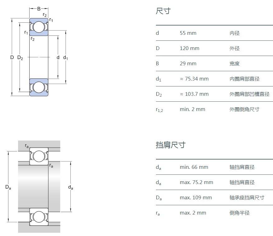 SIAIF不銹鋼深溝球軸承 S6311-2Z 詳細(xì)參數(shù)