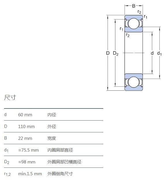 SIAIF不銹鋼深溝球軸承 S6212-2Z 詳細(xì)參數(shù)