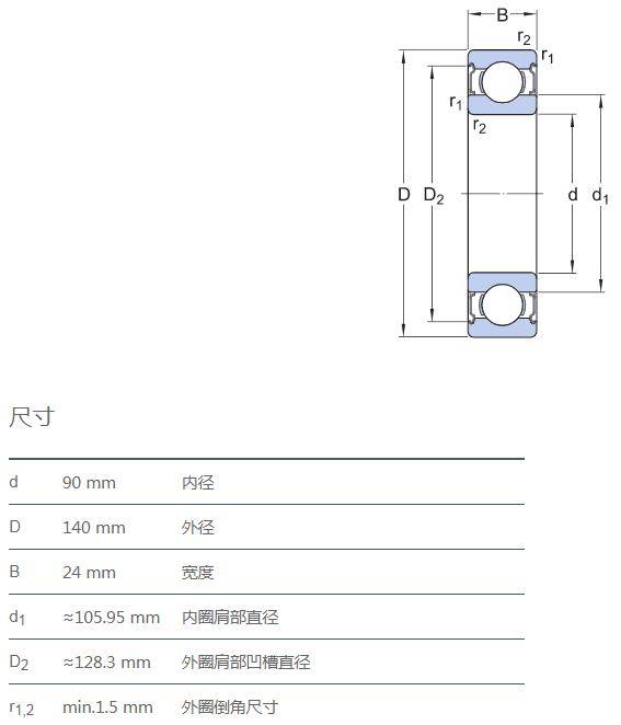 SIAIF不銹鋼深溝球軸承 S6018-2Z 詳細參數(shù)