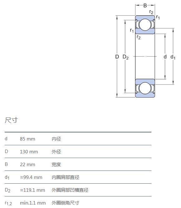 SIAIF不銹鋼深溝球軸承 S6017-2Z 詳細參數(shù)