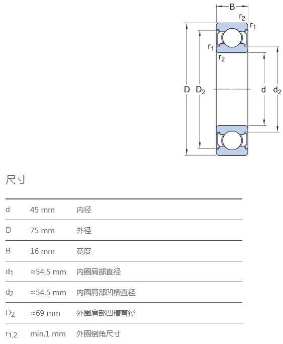 SIAIF不銹鋼深溝球軸承 S6009-2Z 詳細(xì)參數(shù)