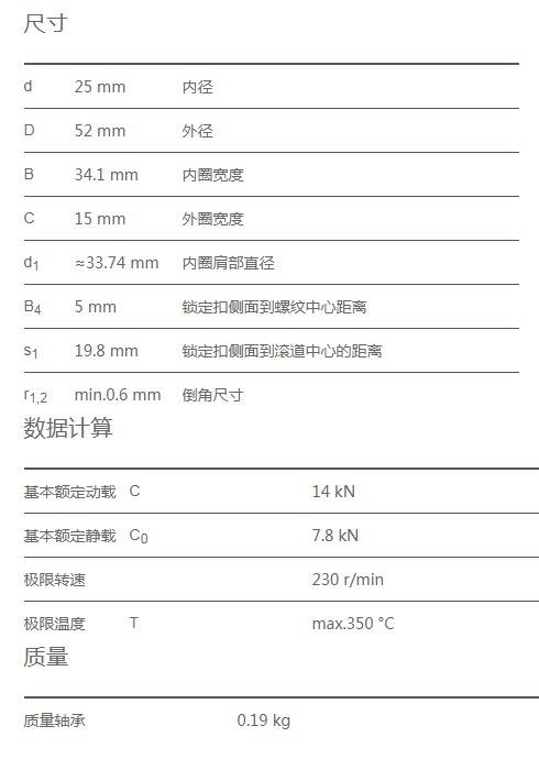 所有變型都使用石墨基高溫潤滑劑對軸承進行了終生潤滑。