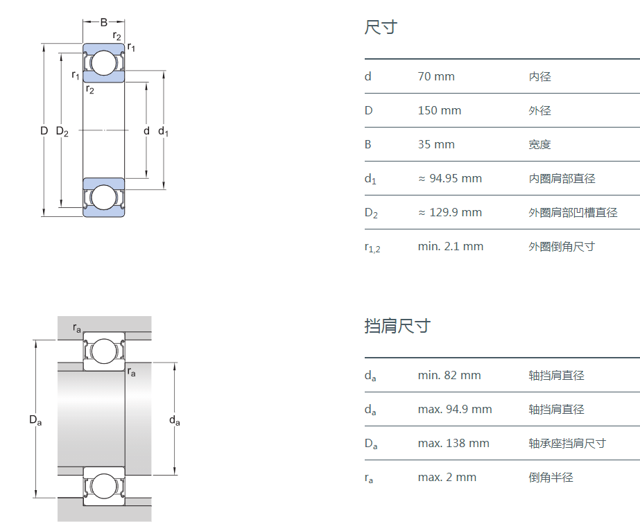 SIAIF不銹鋼深溝球軸承 S6314-2Z 詳細(xì)參數(shù)