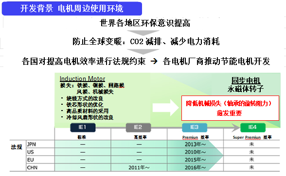 雖然軸承的摩擦損耗大約只占電機總能耗的1%,但由于工業(yè)電機的總耗電量較高,仍然希望可進(jìn)一步降低能耗。為滿足社會的需求,SIAIF不斷推進(jìn)新產(chǎn)品開發(fā)。